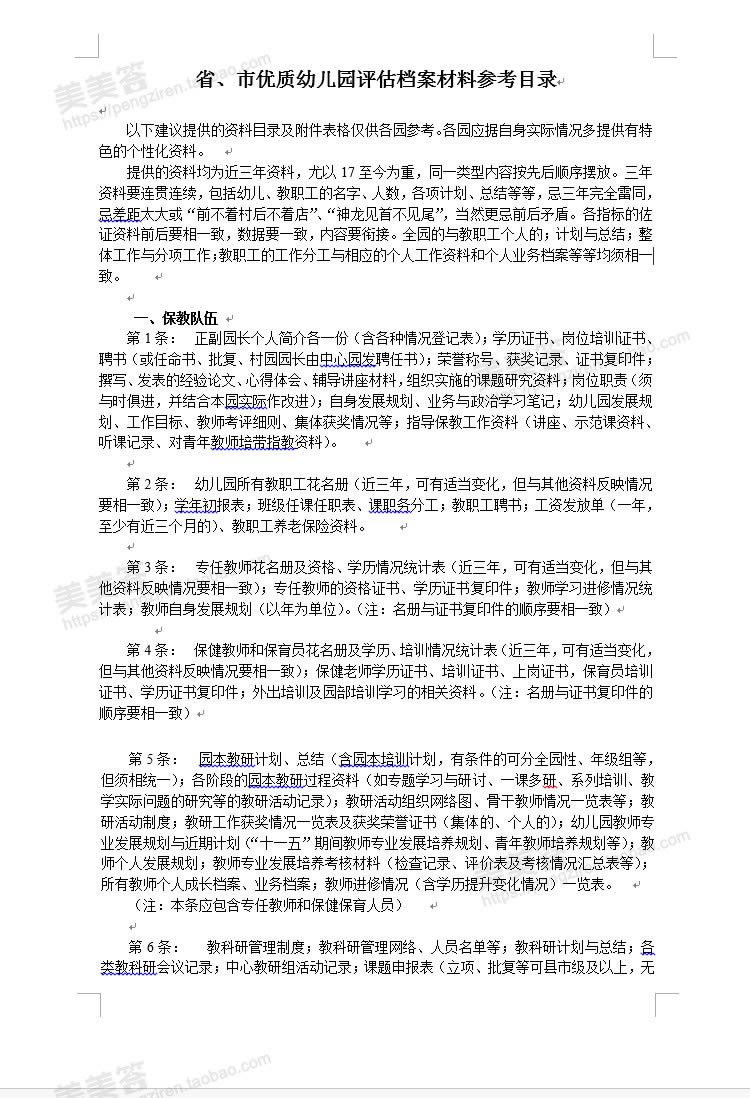 85.市级幼儿园评估材料参考