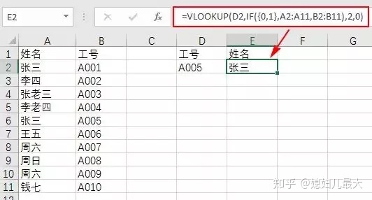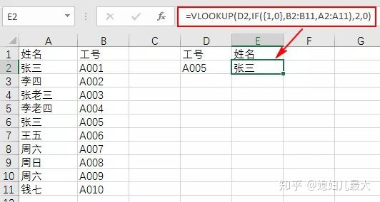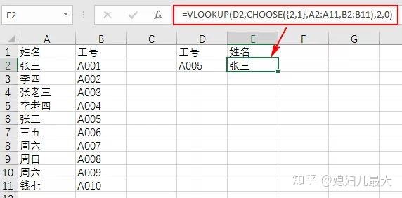 函数VLOOKUP+CHOOSE{2,1}结构: