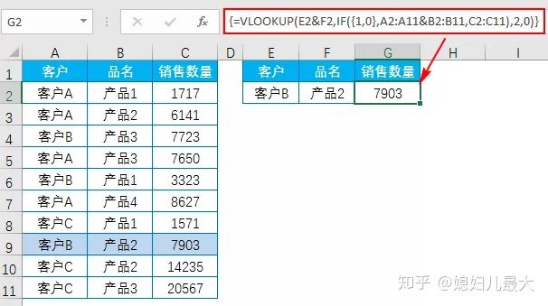 与反向查找一样,可以借助IF{1,0}与IF{0,1}、CHOOSE{1,2}与CHOOSE{2,1}等结构