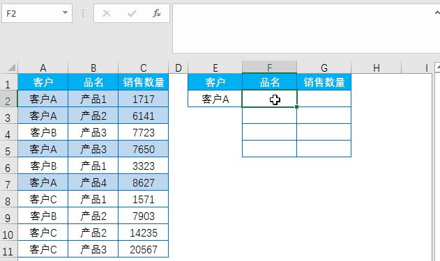 A$2:A5部分返回{"产品1";"产品3";0;0}