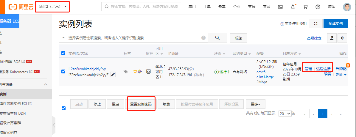 1、用阿里云后台自带终端(推荐),登录阿里云,进入云服务器 ECS,【实例与镜像】-【实例】-左上角最顶部选择服务器所在地区(有点隐蔽),比如选【华北2 北京】