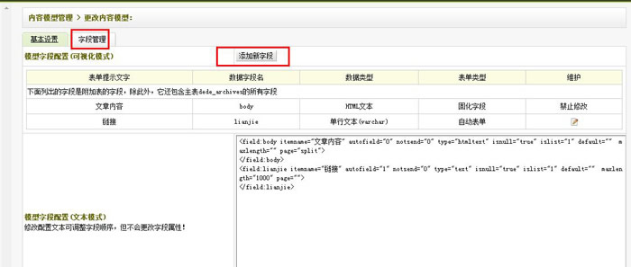 如何修改织梦内容模型添加字段